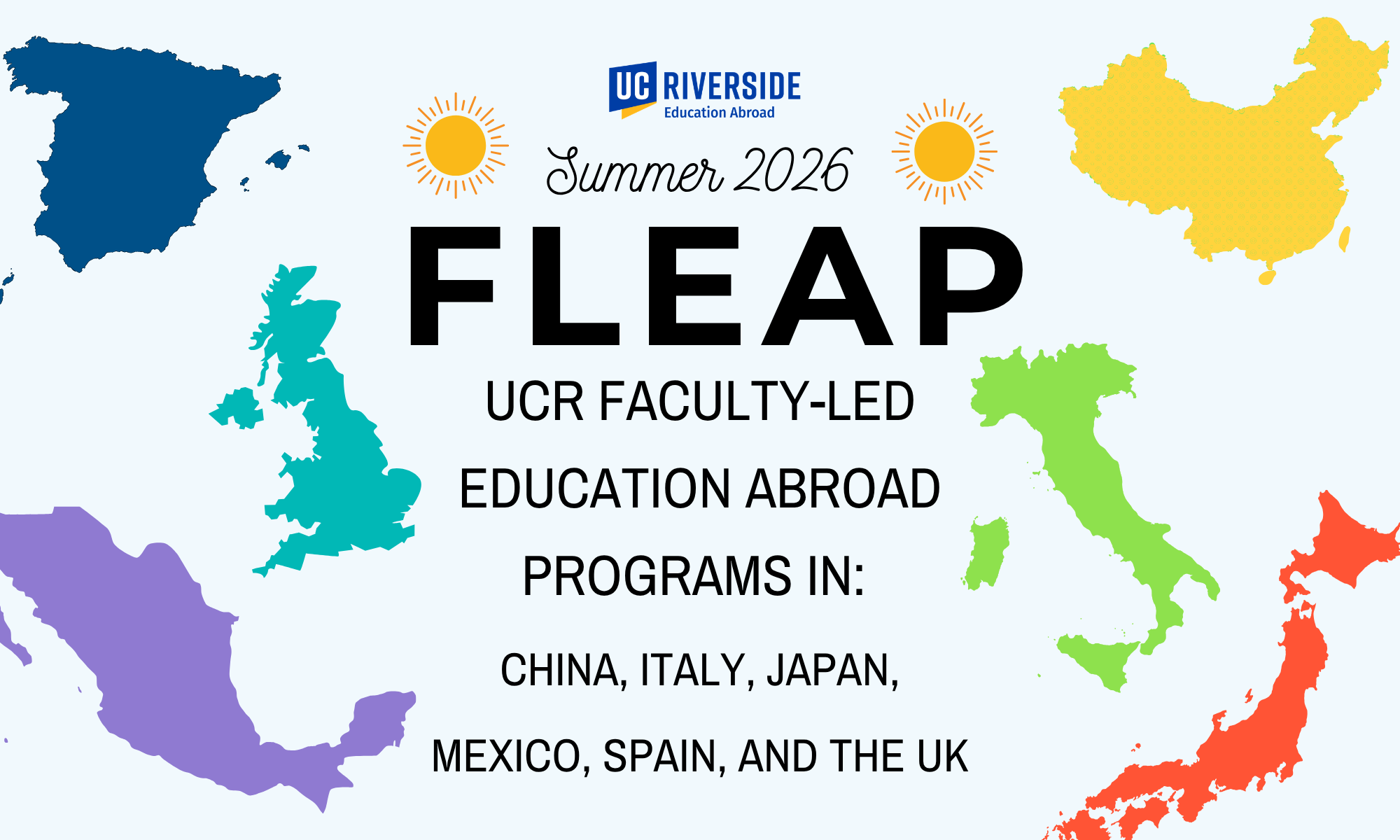 UCR professors lead Faculty-Led Education Abroad Programs (FLEAPs) during summer for 2-5 weeks in other countries. FLEAPs are open to everyone, even non-UCR students.